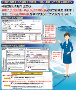 A partir del 1 de abril de este año se realizaron cambios en la tarjeta de desembarque/embarque para extranjeros al entrar o salir del país, o re-ingresar (re-entrar). Además se anuló la tarjeta de embarque de extranjeros (gaikokujin shukkoku kiroku).
