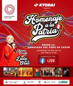 El próximo domingo 25 de julio, se celebrará desde Japón este evento para conmemorar los 200 años de vida republicana, el Bicentenario de la Independencia del Perú, el evento tiene el nombre de “HOMENAJE A LA PATRIA”.